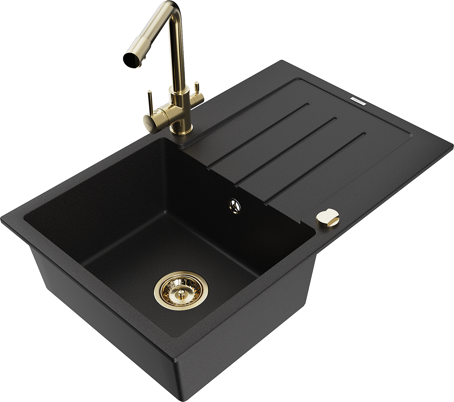 Mexen Bruno granitový dřez 1-komorový s odkapávačem a kuchyňskou baterií Duero, černý - 6513-77-671600-50