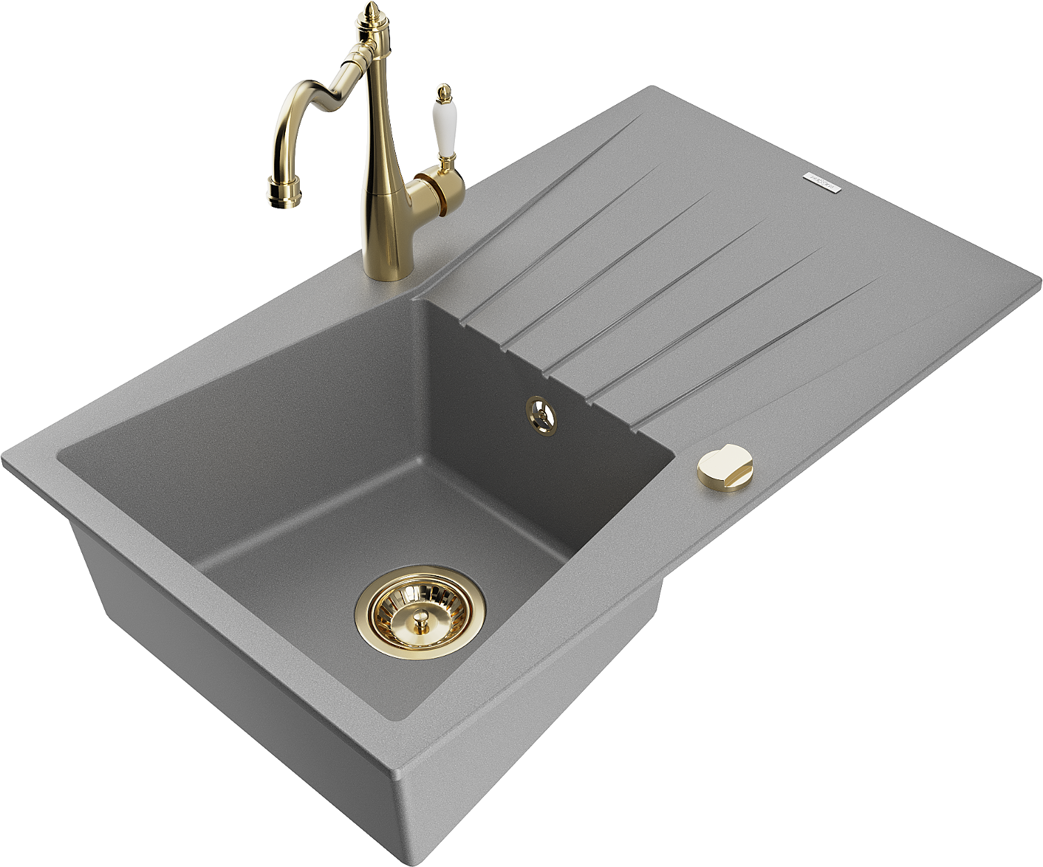 Mexen Cesar žulový dřez jednokomorový s odkapávačem a kuchyňskou baterií Carla, šedý - 6514-71-670700-50