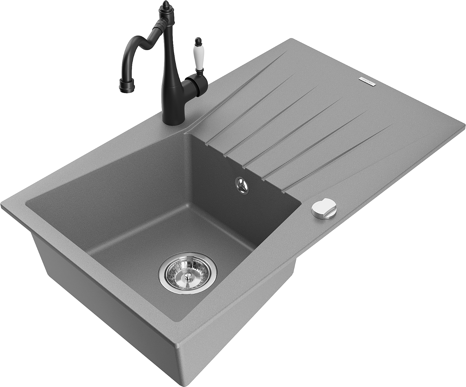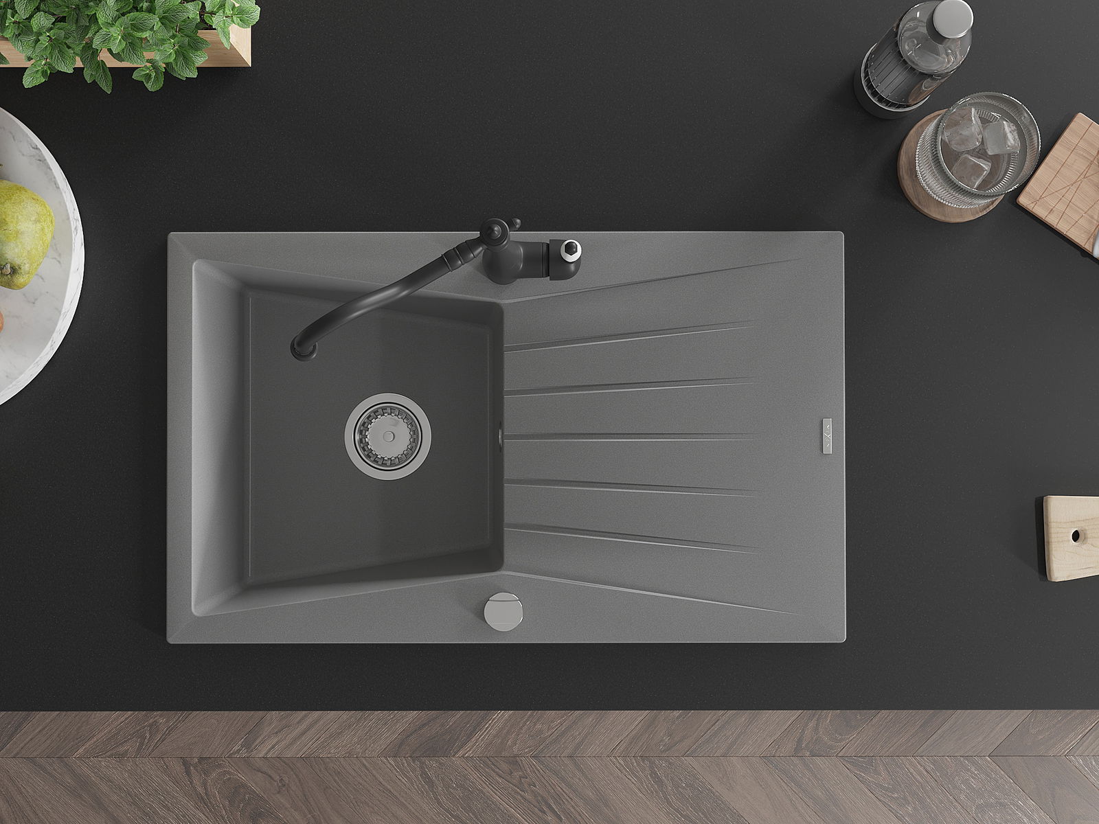 Mexen Cesar granitový dřez s 1 komorou, odkapávačem a kuchyňskou baterií Carla, šedý - 6514-71-670700-70