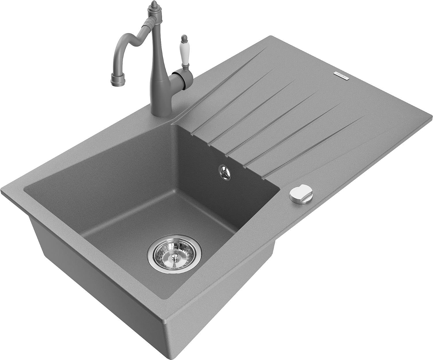 Mexen Cesar žulový dřez s 1 komorou a odkapávačem a kuchyňskou baterií Carla, šedý - 6514-71-670700-71