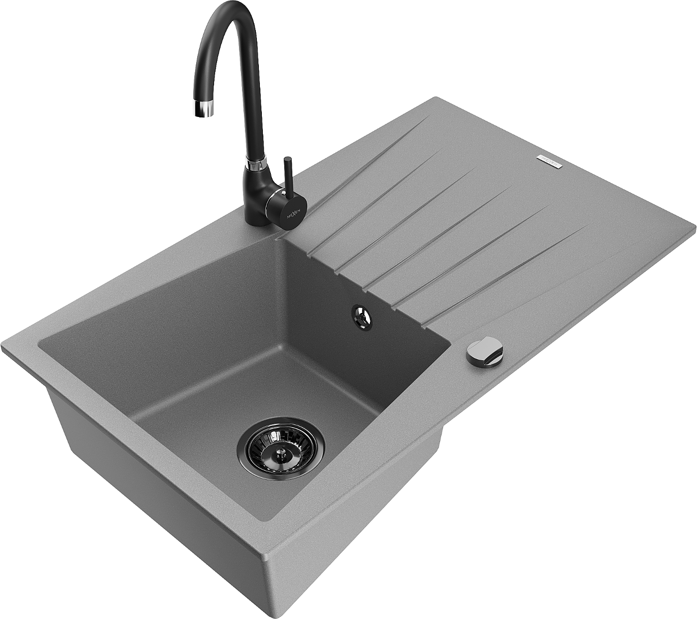 Mexen Cesar granitový dřez 1-komorový s odkapávačem a kuchyňskou baterií Telma, šedý - 6514-71-670200-70-B