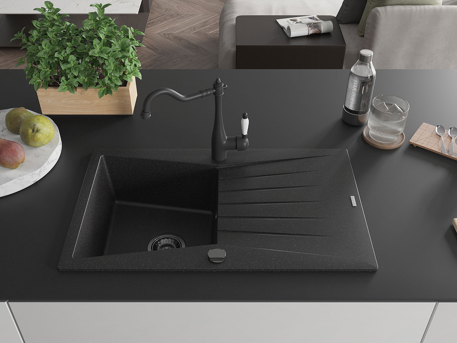 Dřez byl vyroben z vysoce kvalitního granitu. Představuje elegantní a především praktický doplněk každé kuchyně, bez ohledu na její styl. Vysoká kvalita a trvanlivost granitu zajišťují dlouholeté používání.