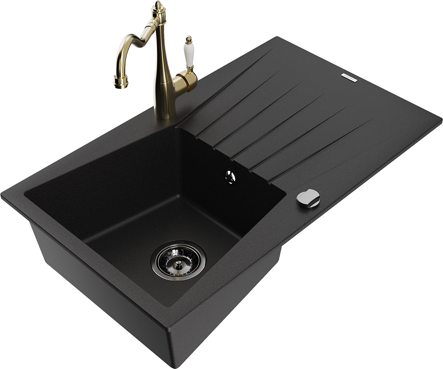 Mexen Cesar granitový dřez 1-komorový s odkapávačem a kuchyňskou baterií Carla, černý - 6514-77-670700-50-B
