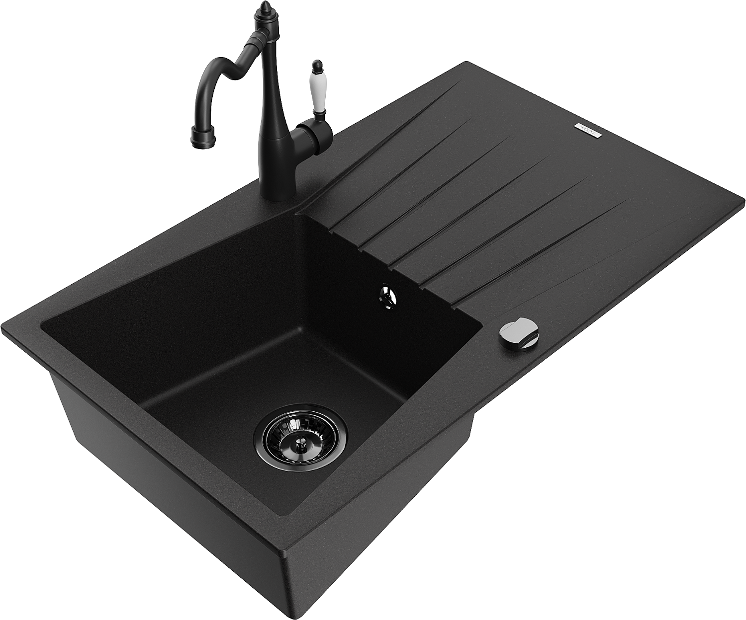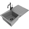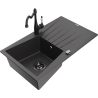Mexen Cesar granitový dřez 1-komorový s odkapávačem a kuchyňskou baterií Carla, černý - 6514-77-670700-70-B