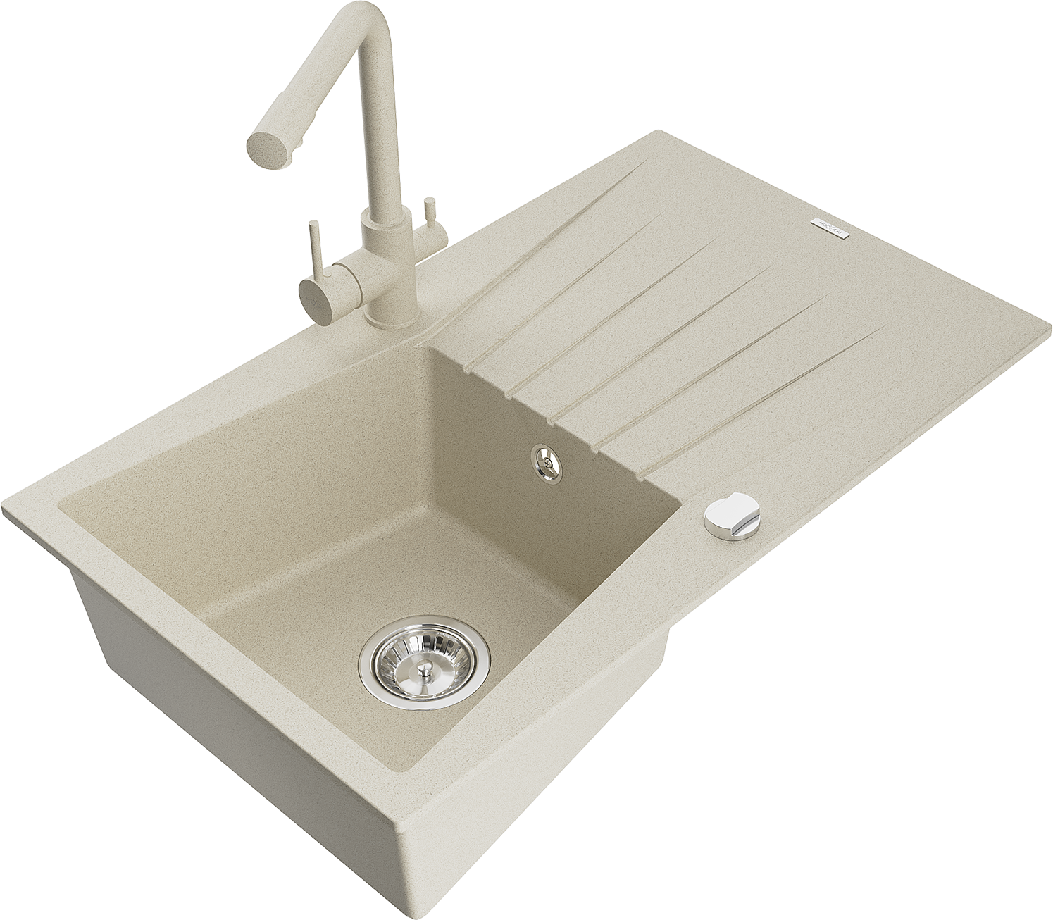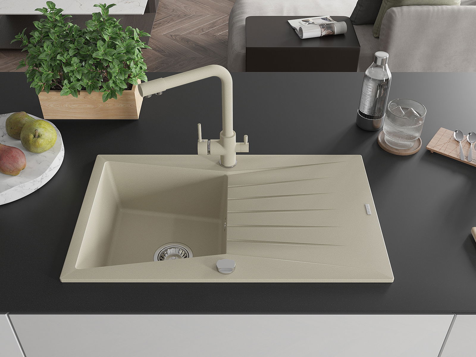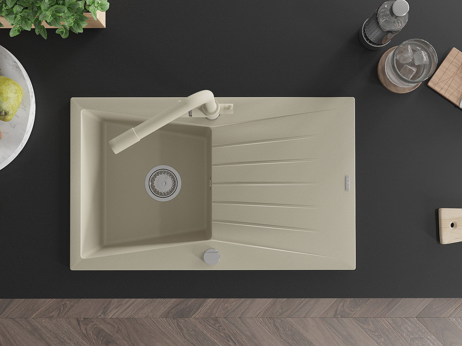 Mexen Cesar granitový dřez 1-komorový s odkapávačem a kuchyňskou baterií Duero, béžový - 6514-69-671600-69