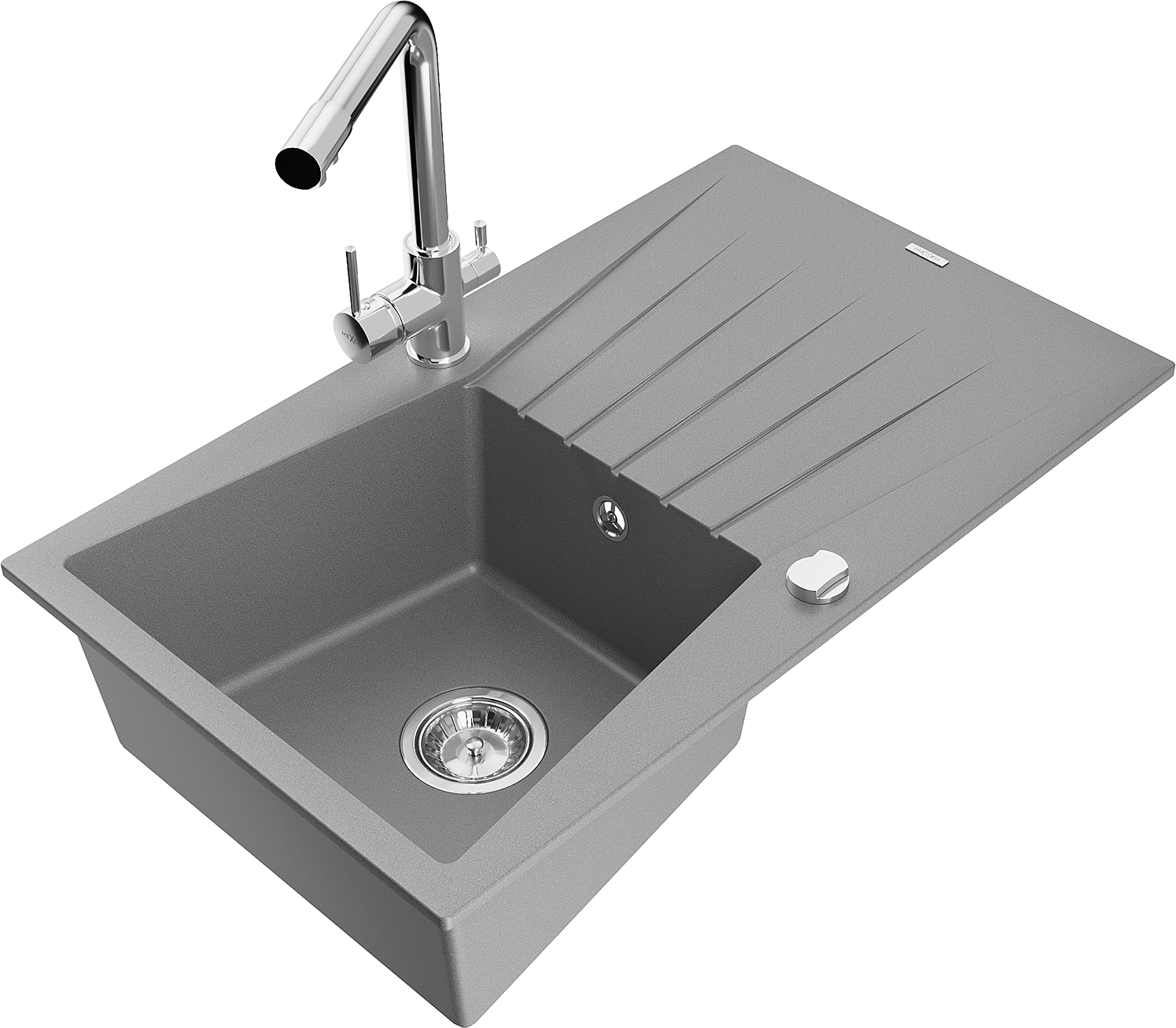 Mexen Cesar granitový dřez s odkapávačem a kuchyňskou baterií Duero, šedý - 6514-71-671600-00