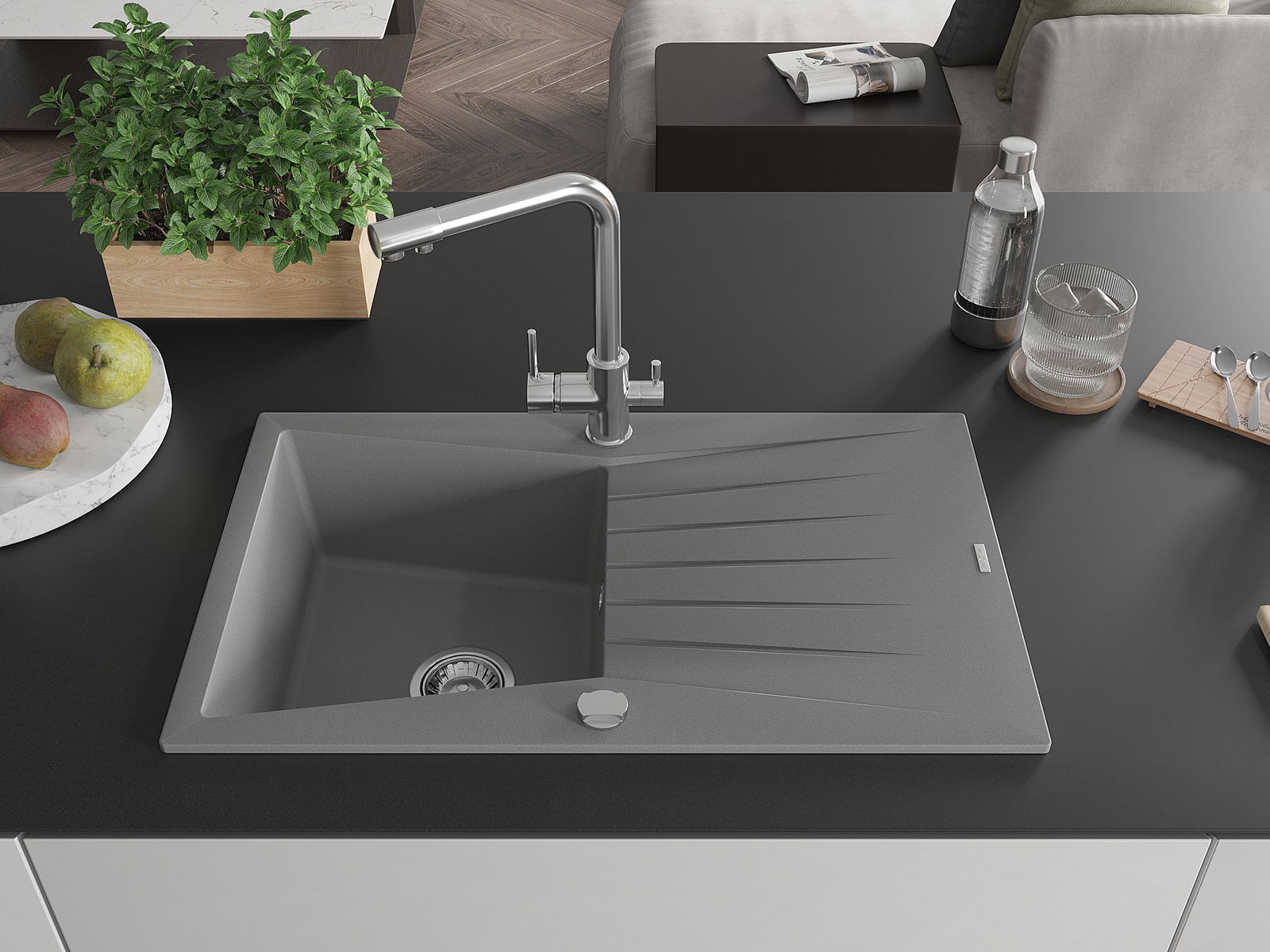 Dřez byl vyroben z vysoce kvalitního granitu. Představuje elegantní a především praktický doplněk každé kuchyně, bez ohledu na její styl. Vysoká kvalita a trvanlivost granitu zajišťují dlouholeté používání.