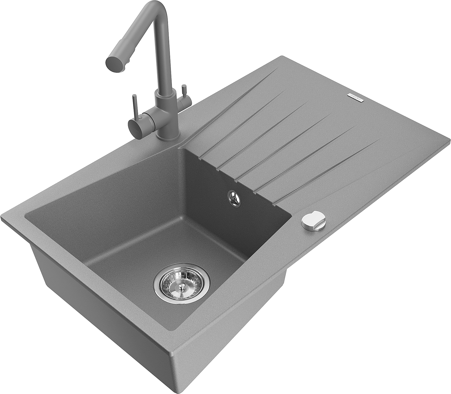 • Mexen Cesar granitový dřez s 1 komorou, odkapávačem a kuchyňskou baterií Duero, šedý - 6514-71-671600-71