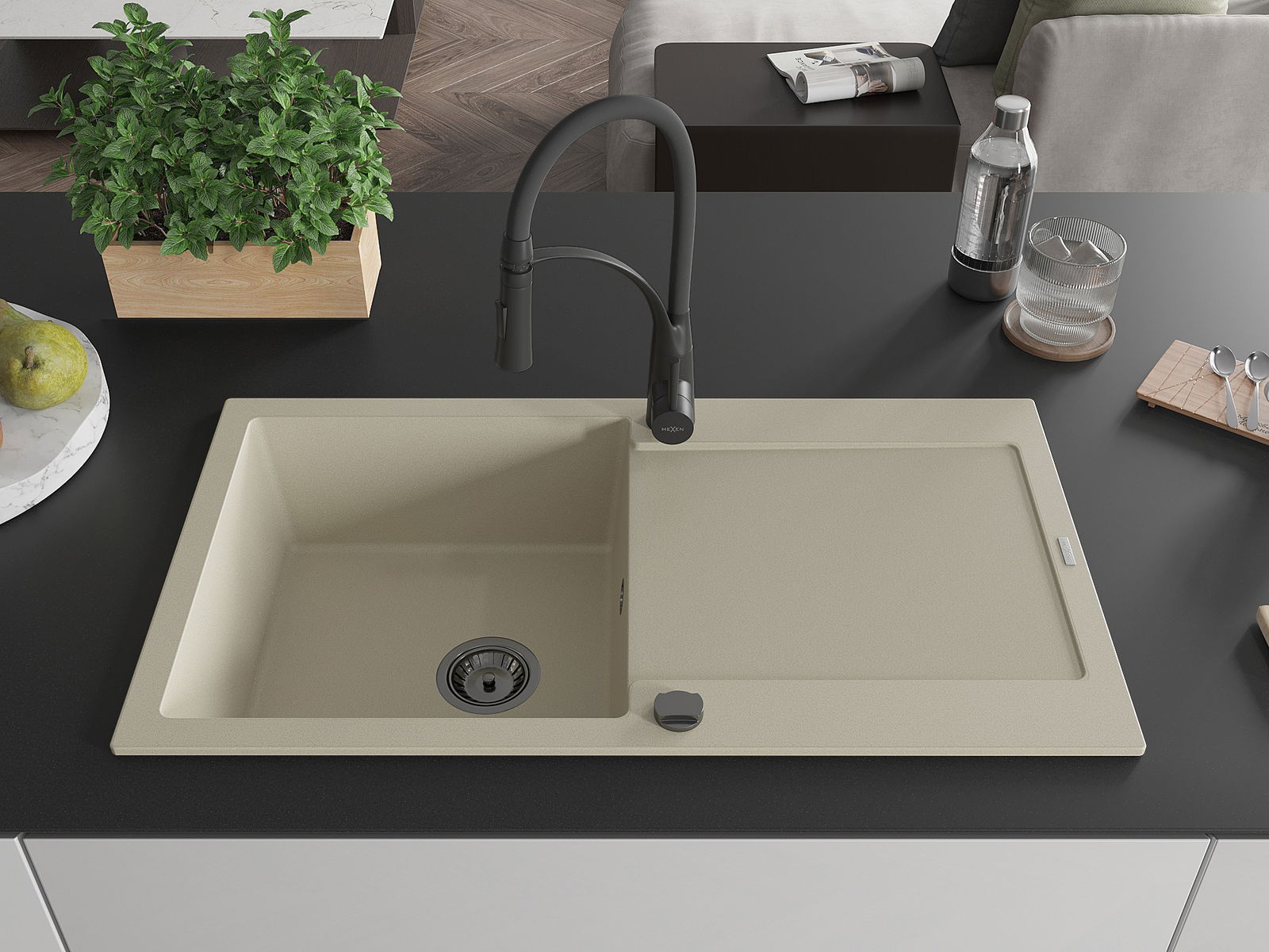 Dřez byl vyroben z vysoce kvalitního granitu. Představuje elegantní a především praktický doplněk každé kuchyně, bez ohledu na její styl. Vysoká kvalita a trvanlivost granitu zajišťují dlouholeté používání.