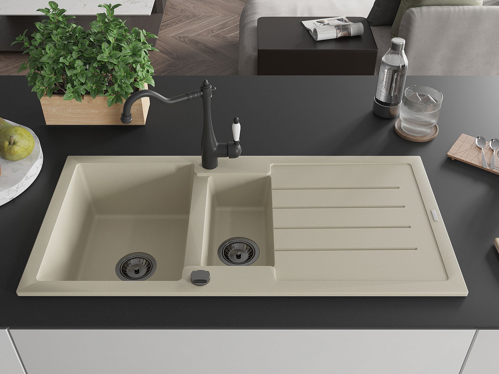Dřez byl vyroben z vysoce kvalitního granitu. Představuje elegantní a především praktický doplněk každé kuchyně, bez ohledu na její styl. Vysoká kvalita a trvanlivost granitu zajišťují dlouholeté používání.