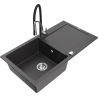 Mexen Leo granitový dřez s jednou komorou a odkapávačem a kuchyňskou baterií Aster, černý/stříbrný metalik - 6501-73-73450-07