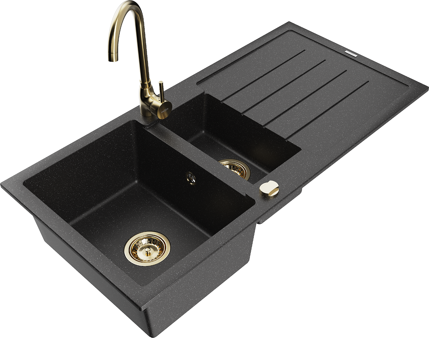 Mexen Andres granitový dřez 1,5-komorový s odkapávačem a kuchyňskou baterií Telma, černý/stříbrný - 6515-73-670200-50