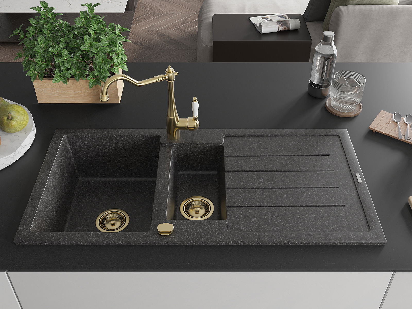 Dřez byl vyroben z vysoce kvalitního granitu. Představuje elegantní a především praktický doplněk každé kuchyně, bez ohledu na její styl. Vysoká kvalita a trvanlivost granitu zajišťují dlouholeté používání.
