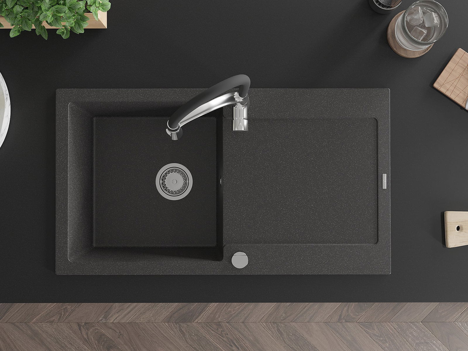 Dřez byl vyroben z vysoce kvalitního granitu. Představuje elegantní a především praktický doplněk každé kuchyně, bez ohledu na její styl. Vysoká kvalita a trvanlivost granitu zajišťují dlouholeté používání.
