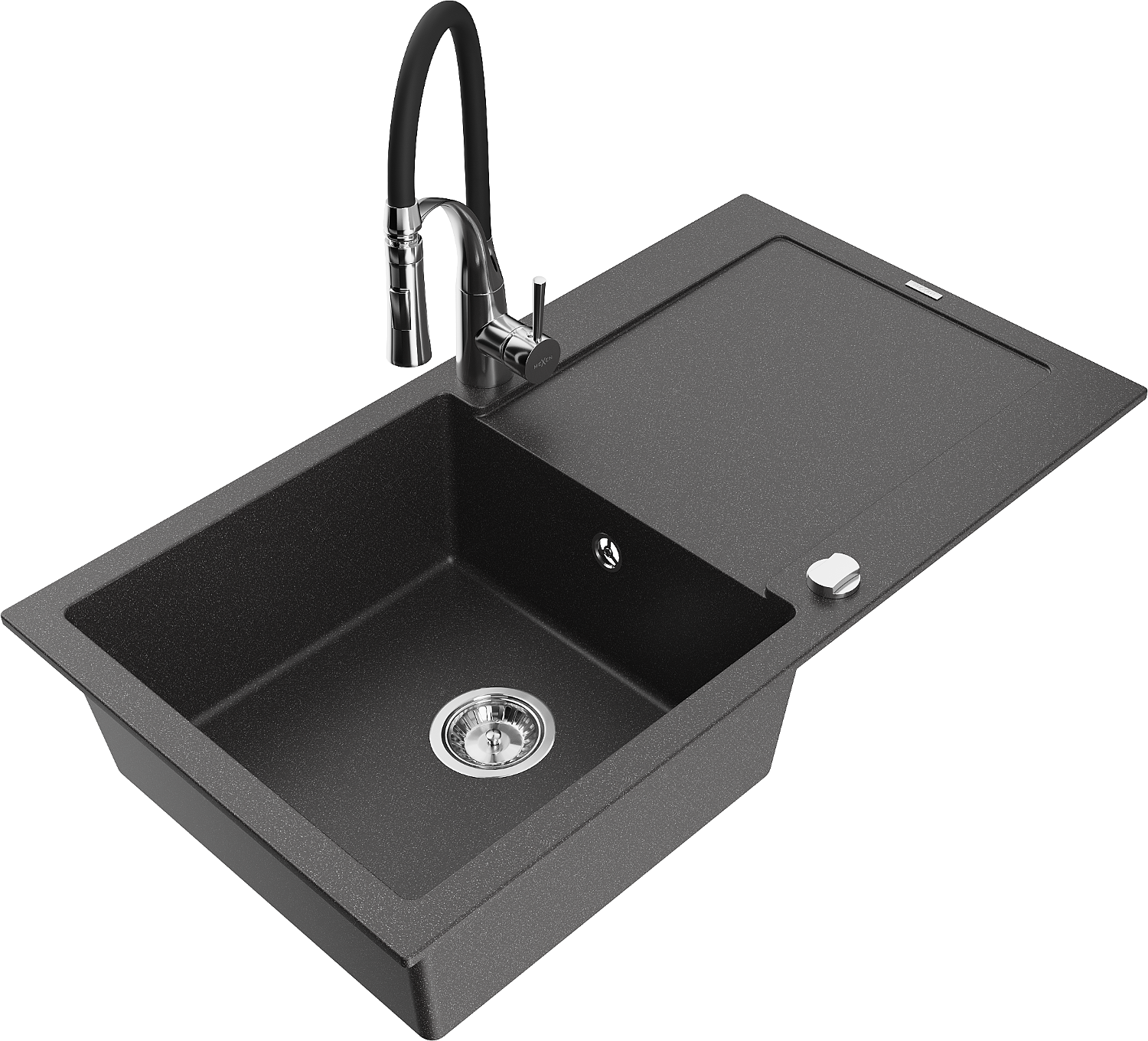 Mexen Leo granitový dřez 1-komorový s odkapávačem a kuchyňskou baterií Aster, černý žíhaný - 6501-76-73450-07