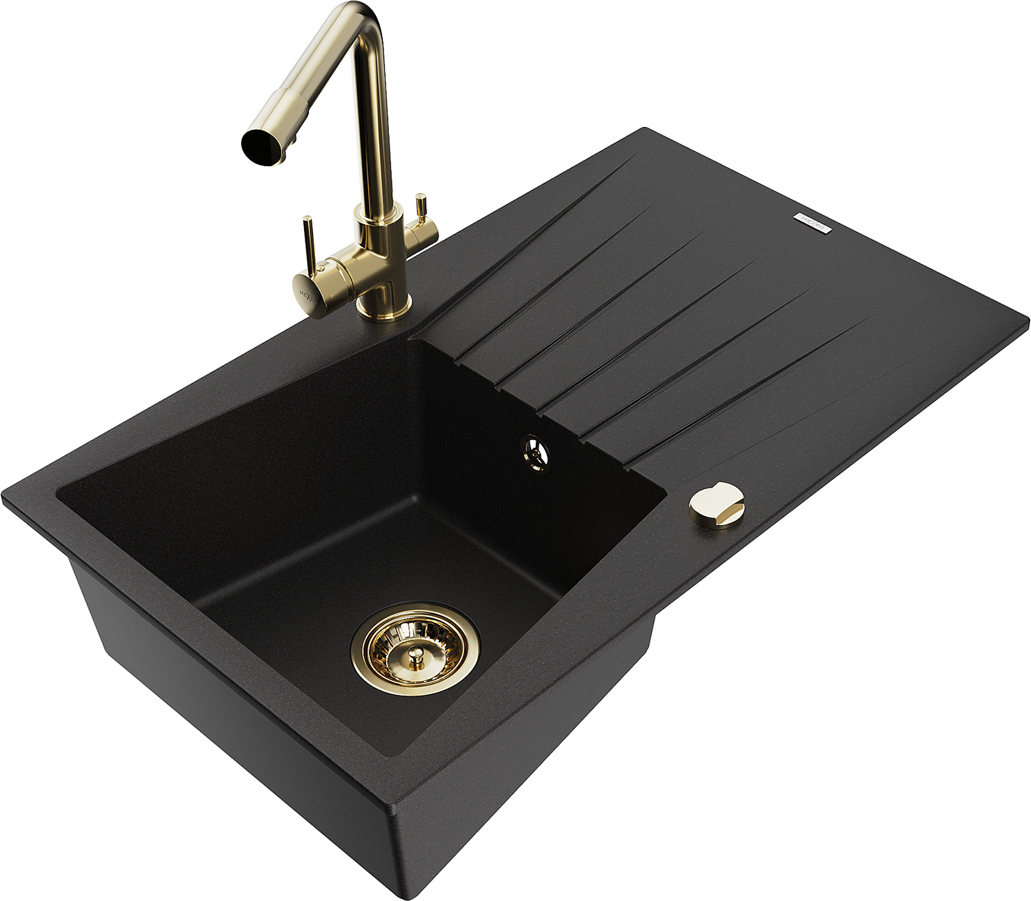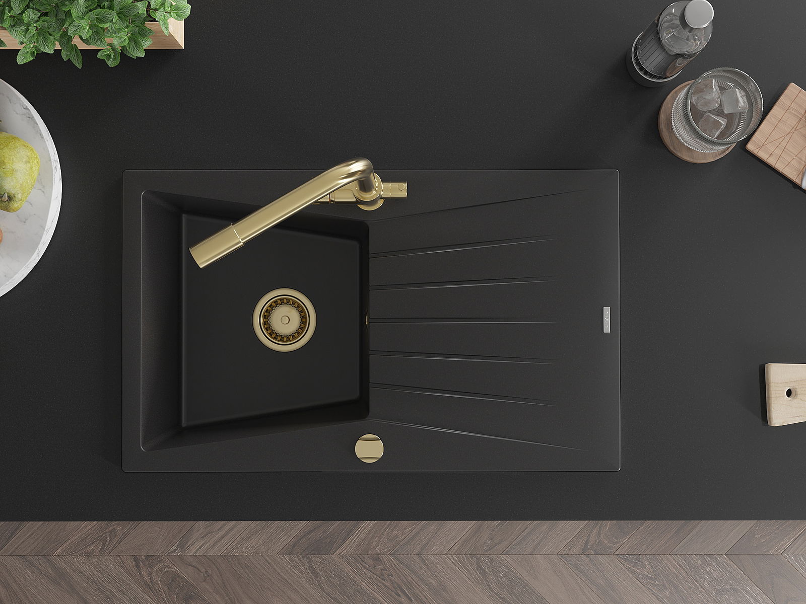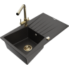 Mexen Cesar granitový dřez 1-komorový s odkapávačem a kuchyňskou baterií Duero, černý - 6514-77-671600-50