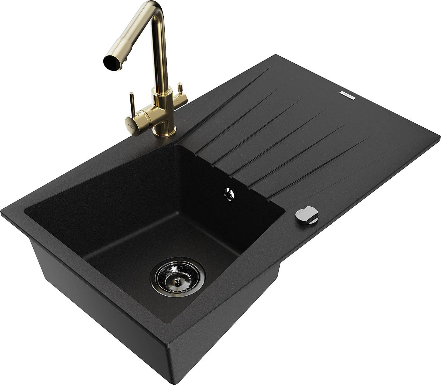 Mexen Cesar granitový dřez 1-komorový s odkapávačem a kuchyňskou baterií Duero, černý - 6514-77-671600-50-B