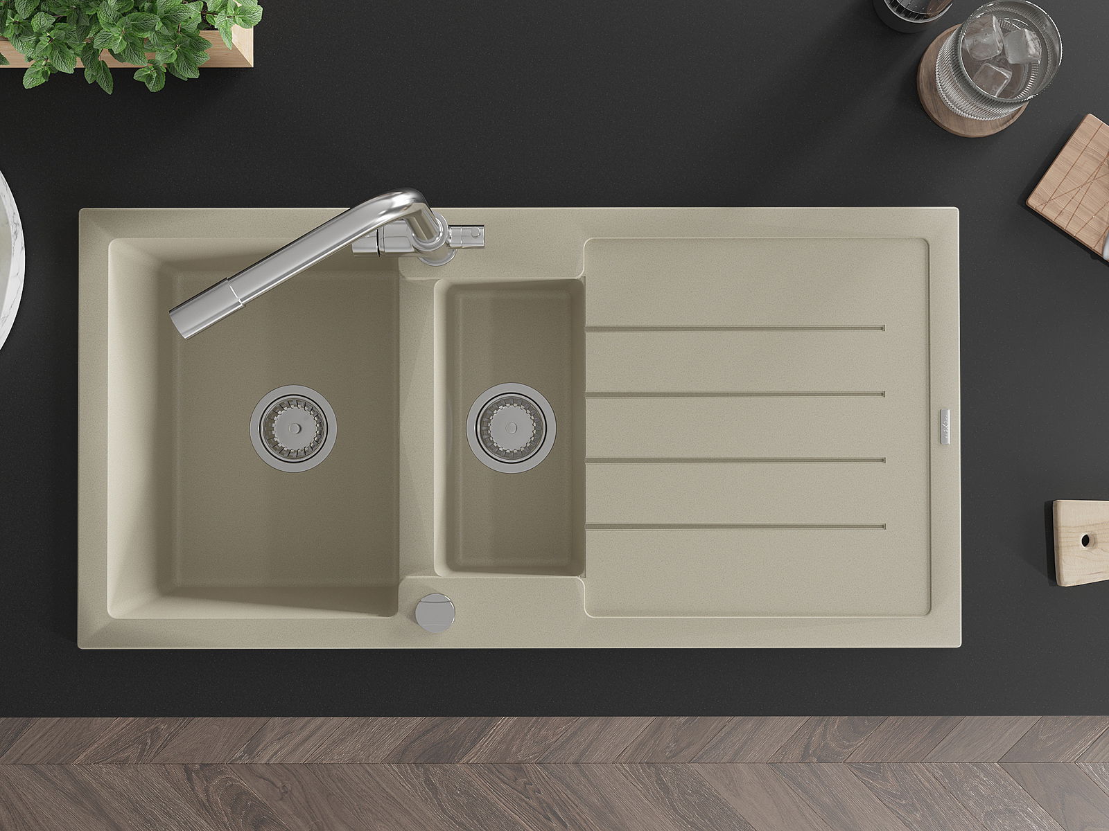Dřez byl vyroben z vysoce kvalitního granitu. Představuje elegantní a především praktický doplněk každé kuchyně, bez ohledu na její styl. Vysoká kvalita a trvanlivost granitu zajišťují dlouholeté používání.