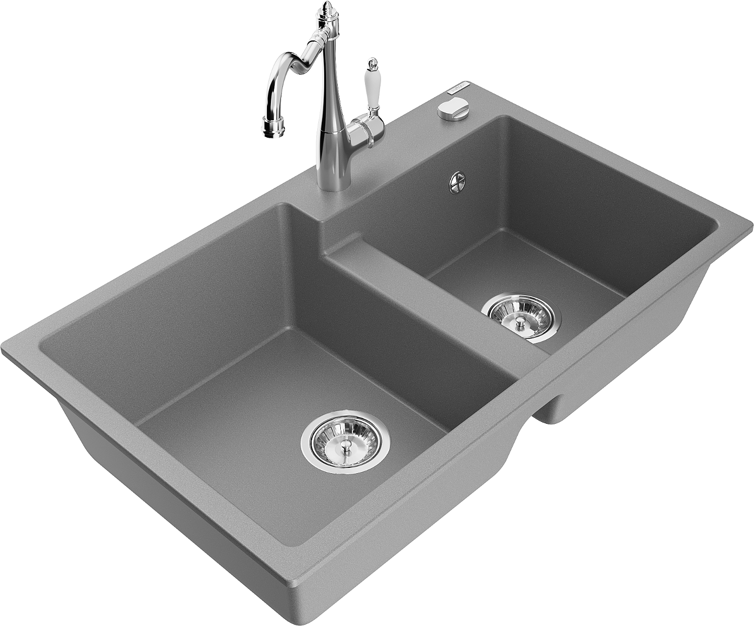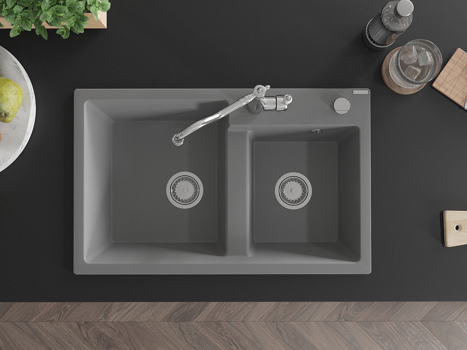 Mexen Tomas dřez granitový 2-komorový s kuchyňskou baterií Carla, šedý - 6516-71-670700-00