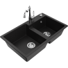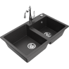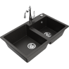 Mexen Tomas granitový dřez 2-komorový s kuchyňskou baterií Carla, černý/stříbrný metalický - 6516-73-670700-00