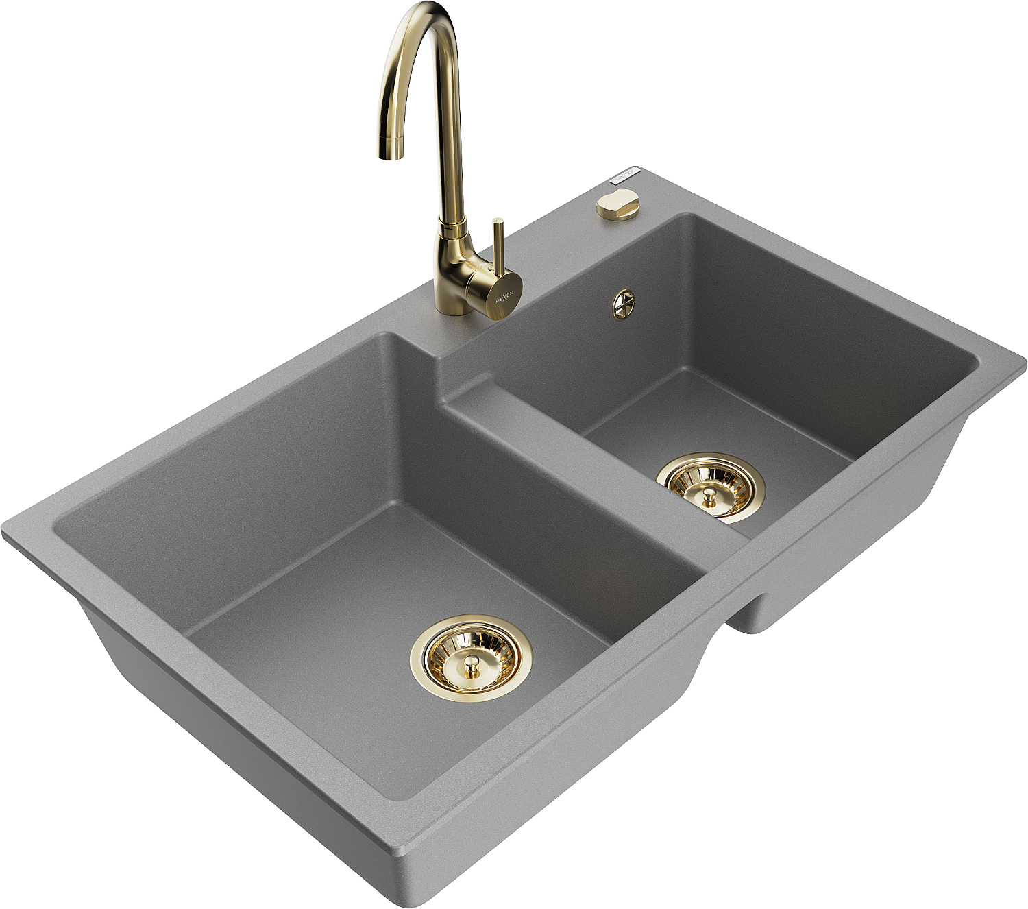 Mexen Tomas dřez granitový 2-komorový s kuchyňskou baterií Telma, šedý - 6516-71-670200-50