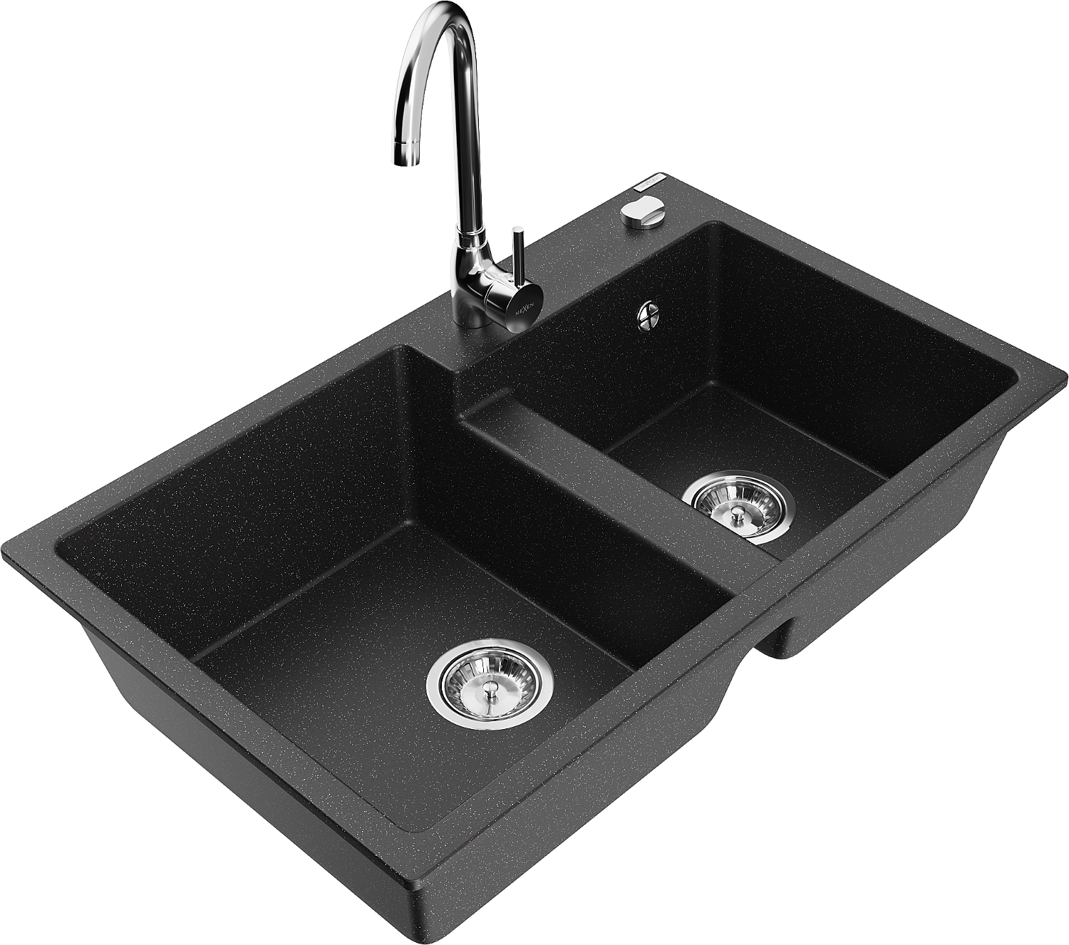 Mexen Tomas žulový dřez 2-komorový s kuchyňskou baterií Telma, černý/stříbrný metalický - 6516-73-670200-00