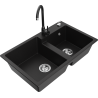 Mexen Tomas dřez granitový 2-komorový s kuchyňskou baterií Telma, černý kropenatý - 6516-76-670200-70