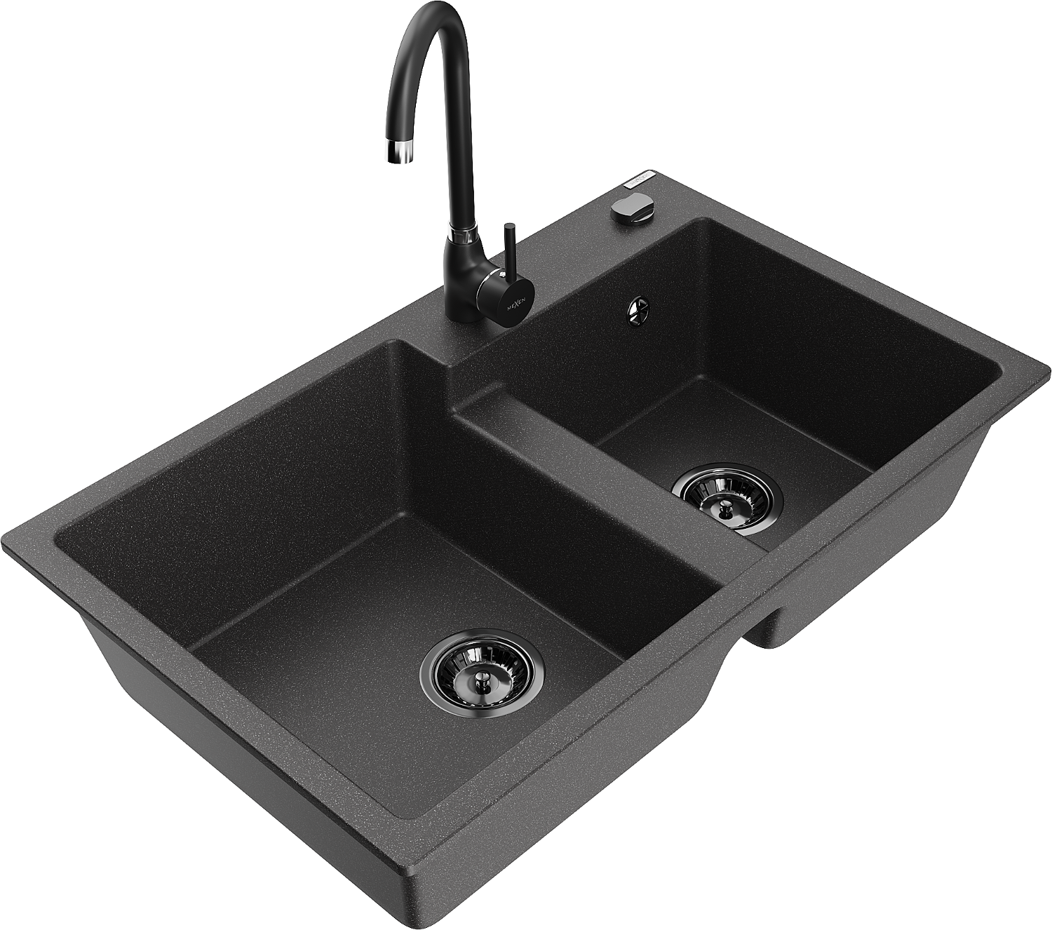 Mexen Tomas granitový dřez 2-komorový s kuchyňskou baterií Telma, černý kropenatý - 6516-76-670200-70-B