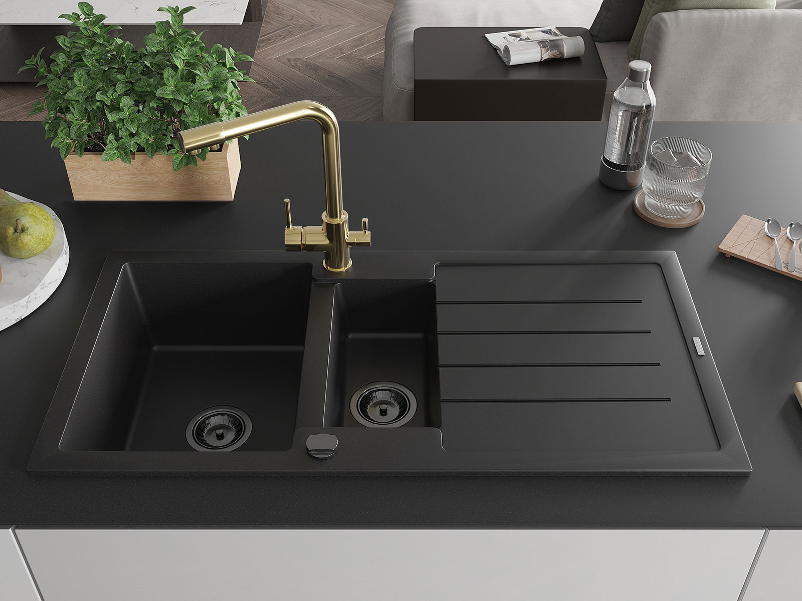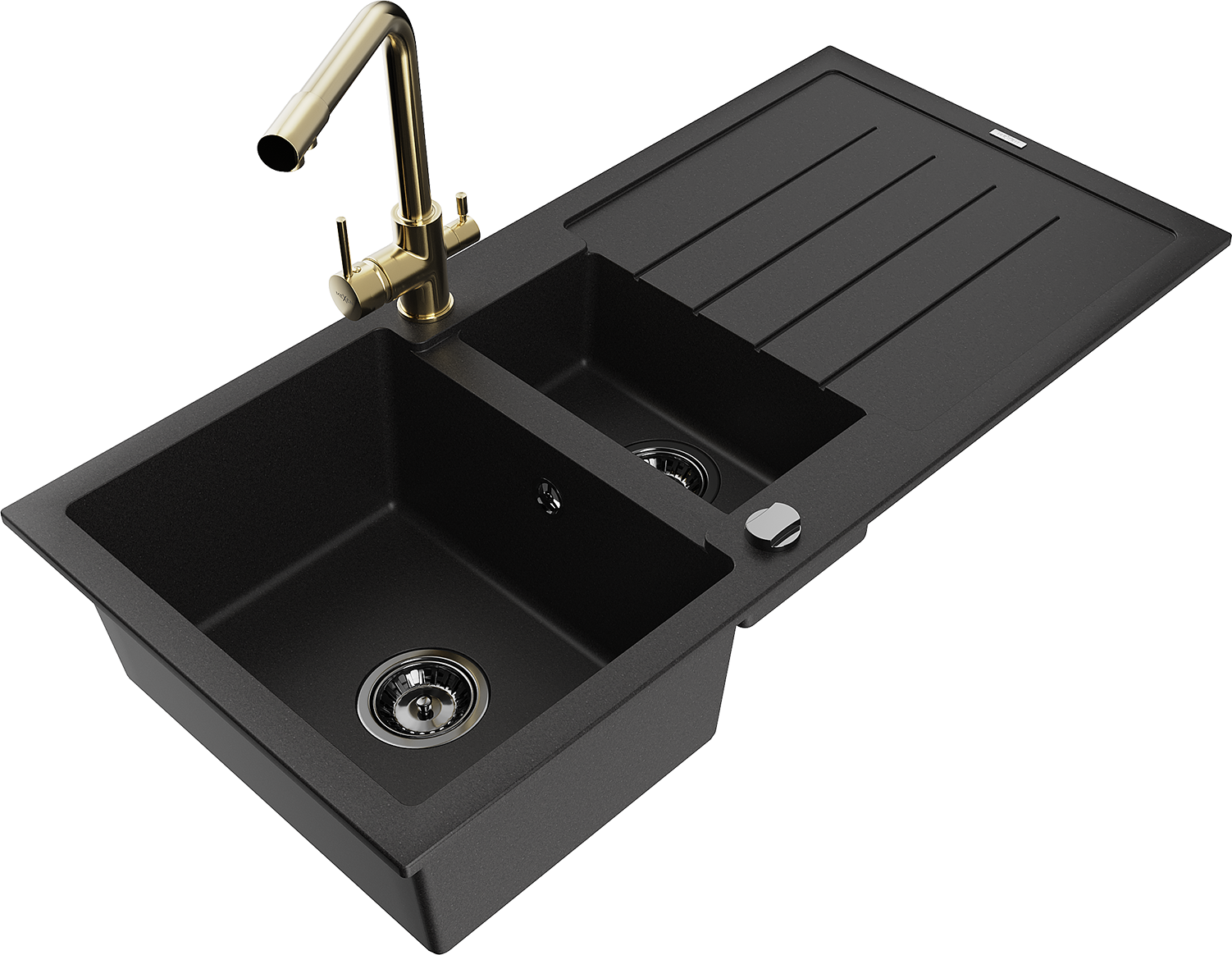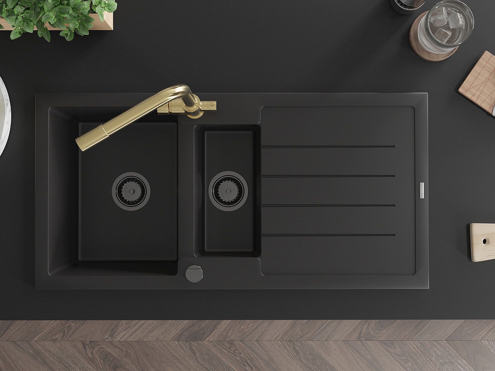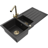 Mexen Andres granitový dřez 1,5-komorový s odkapávačem a kuchyňskou baterií Duero, černý - 6515-77-671600-50-B