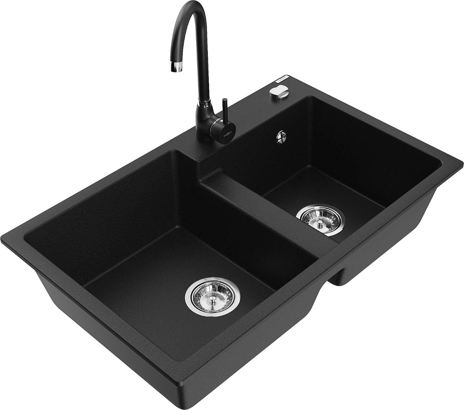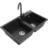 Mexen Tomas žulový dřez s 2 komorami a kuchyňskou baterií Telma, černý - 6516-77-670200-70