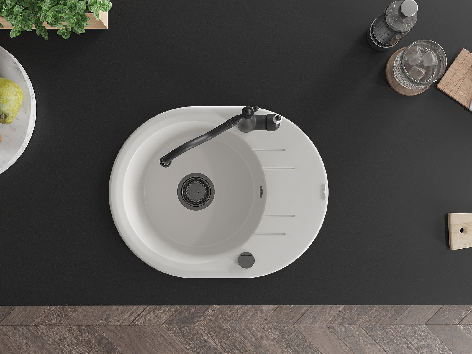 Povrch dřezu je odolný proti skvrnám a zabarvení, což usnadňuje jeho čištění a zachovává jeho barvu po dlouhou dobu používání. Estetický a praktický doplněk každé kuchyně.