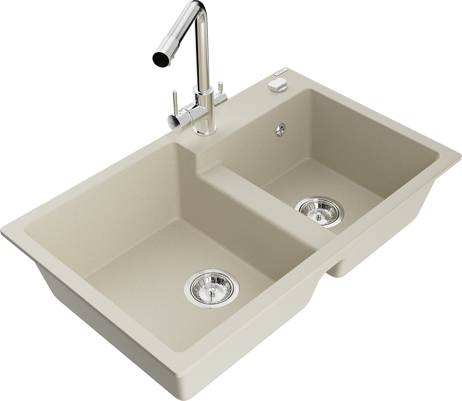 Mexen Tomas dřez žulový 2-komorový s kuchyňskou baterií Duero, béžový - 6516-69-671600-00