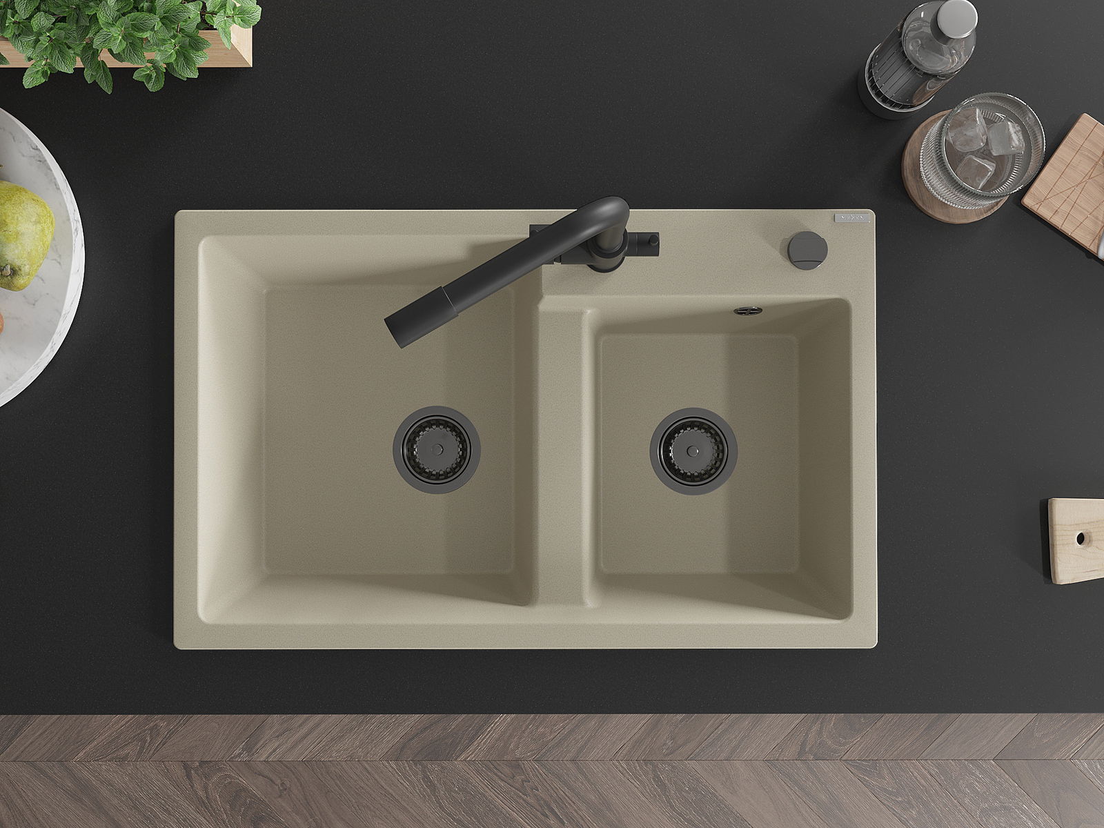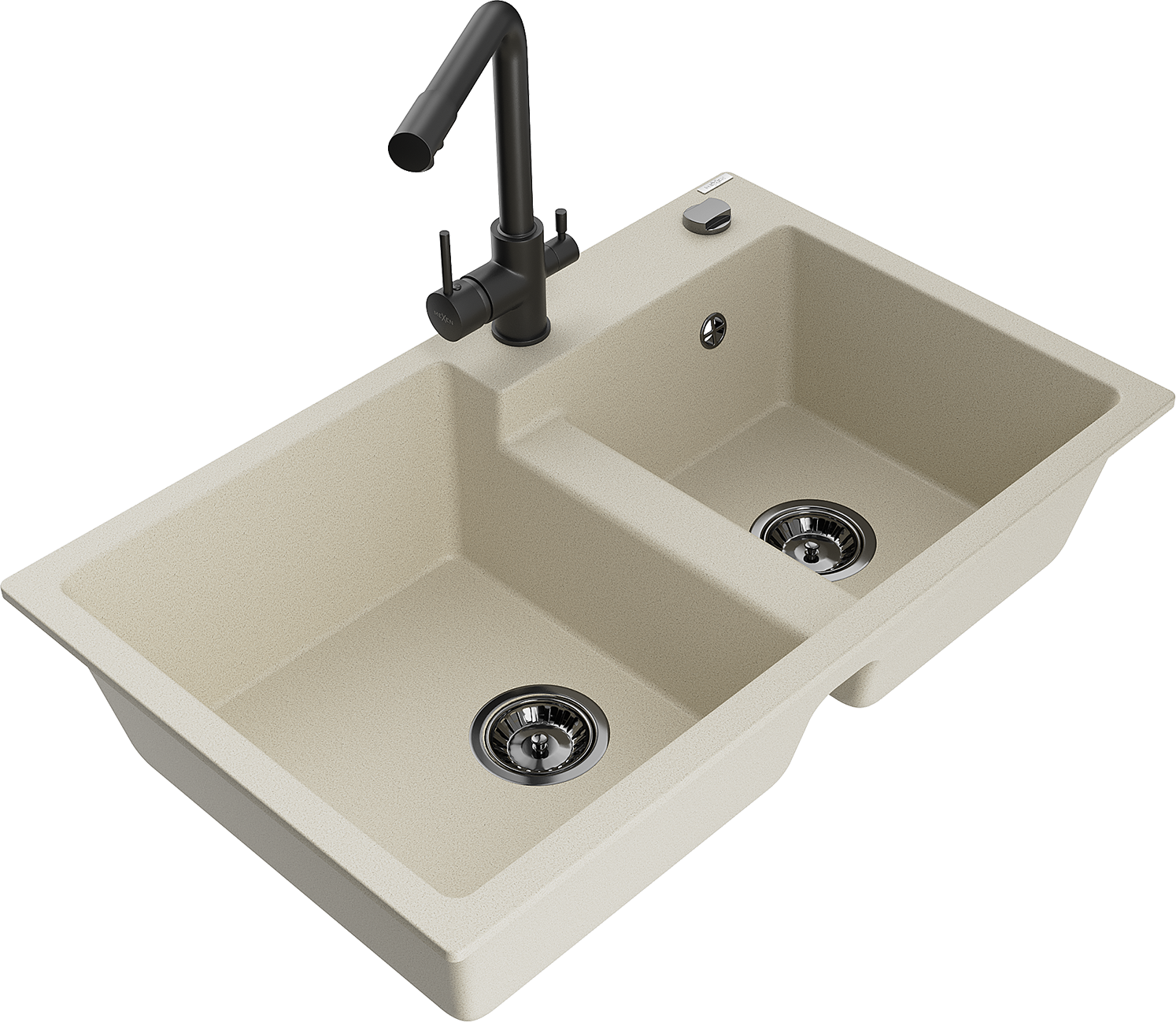 Mexen Tomas dřez granitový 2-komorový s kuchyňskou baterií Duero, béžový - 6516-69-671600-70