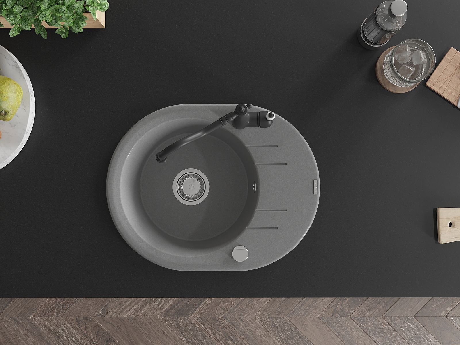 Mexen Kevin granitový dřez 1-komorový s odkapávačem a kuchyňskou baterií Carla, šedý - 6517-71-670700-70