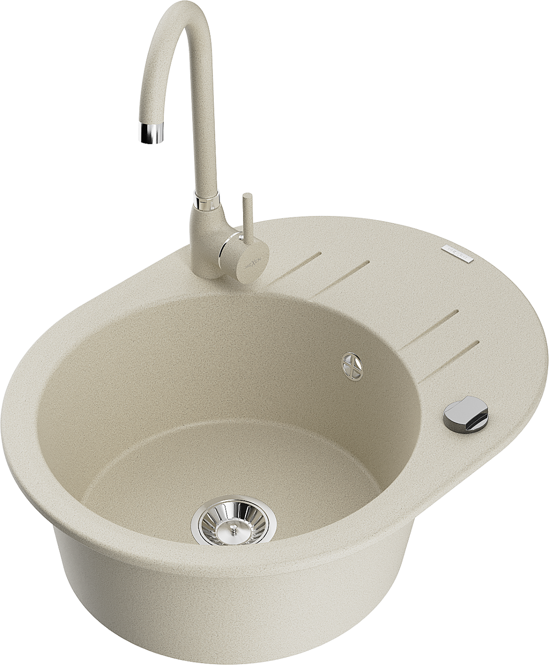 Mexen Kevin granitový dřez s 1 komorou a odkapávačem a kuchyňskou baterií Telma, béžový - 6517-69-670200-69