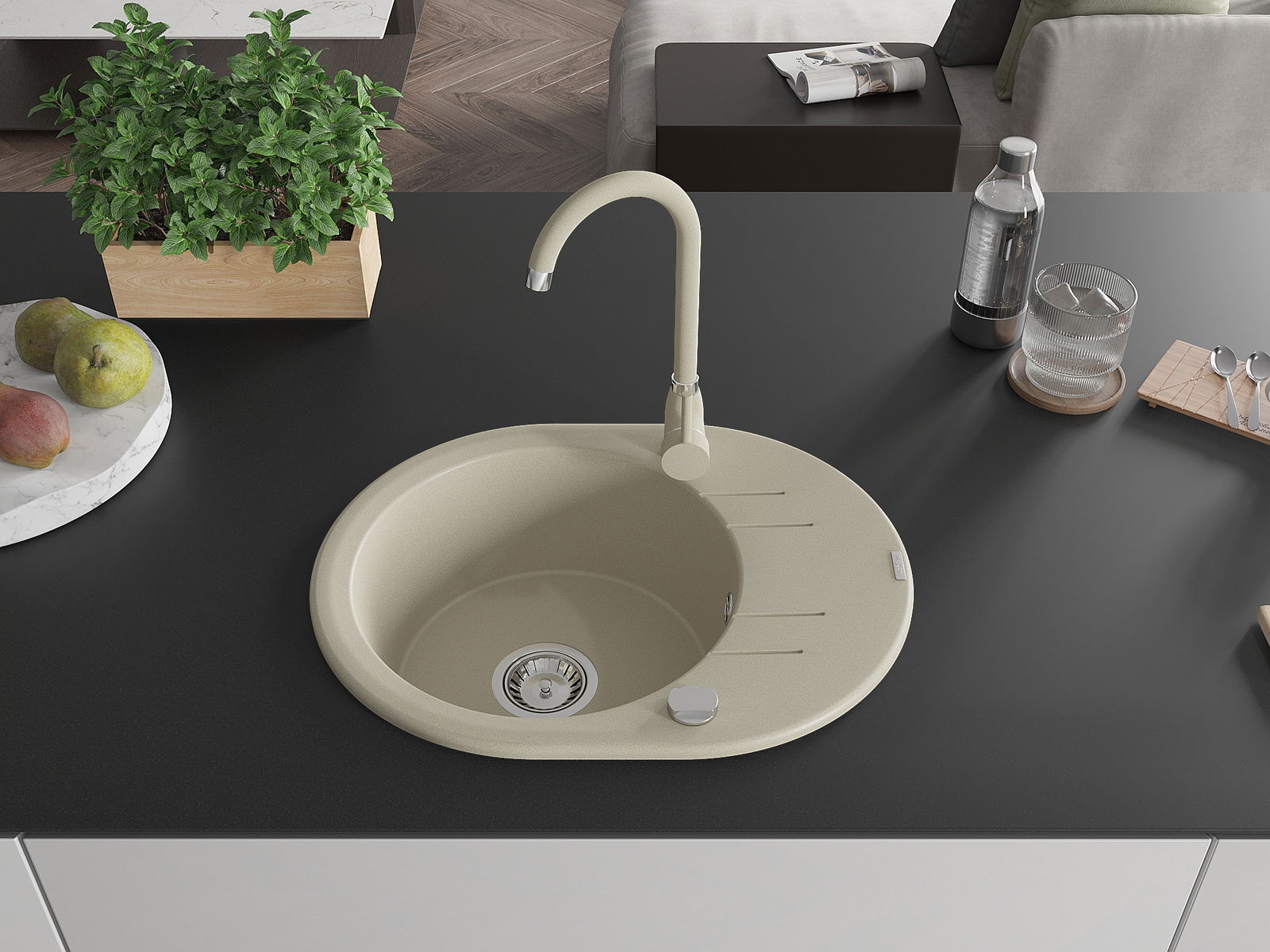 Dřez byl vyroben z vysoce kvalitního granitu. Představuje elegantní a především praktický doplněk každé kuchyně, bez ohledu na její styl. Vysoká kvalita a trvanlivost granitu zajišťují dlouholeté používání.