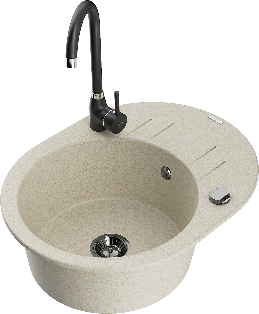 Mexen Kevin granitový dřez jednokomorový s odkapávačem a kuchyňskou baterií Telma, béžový - 6517-69-670200-70