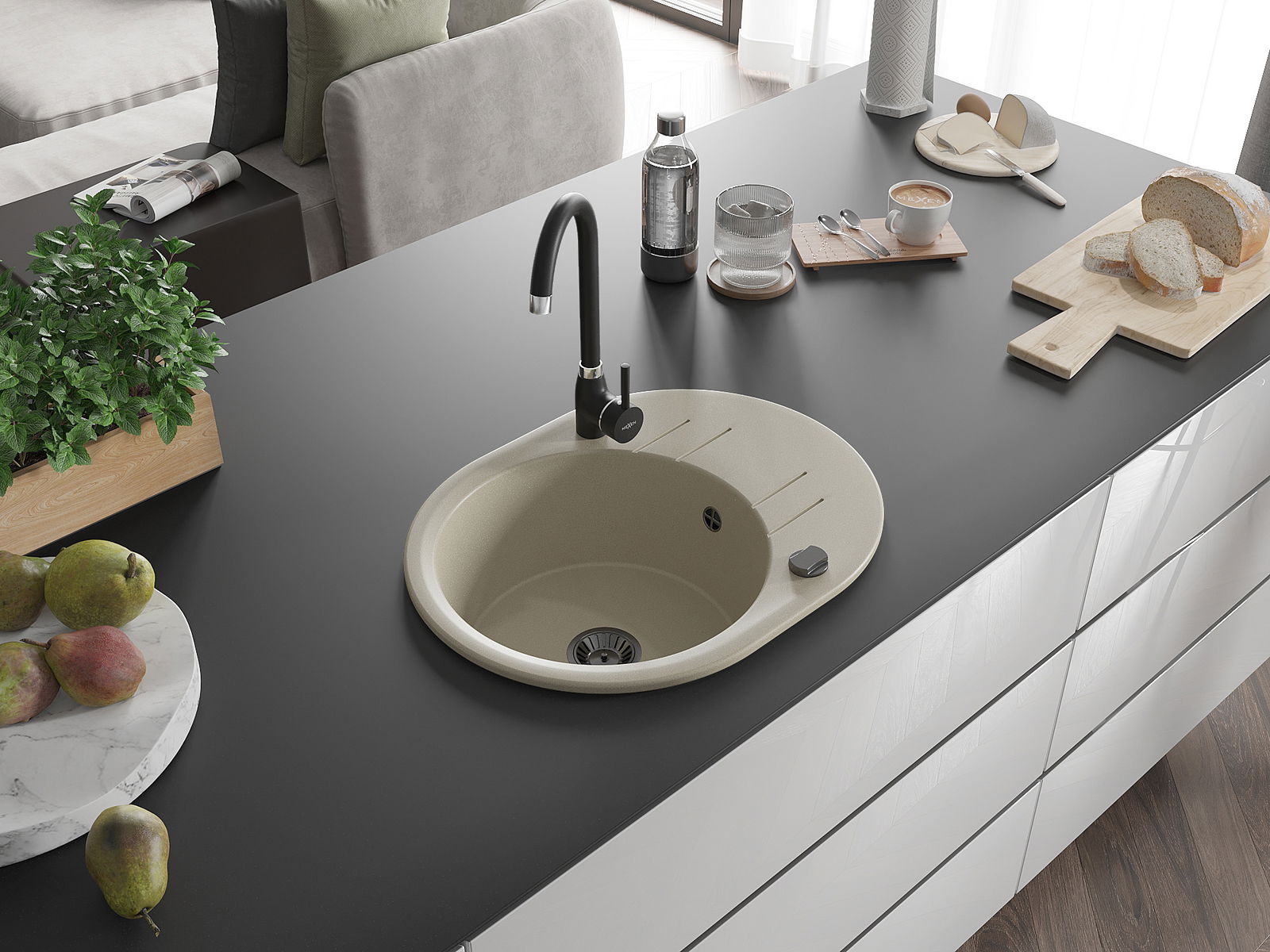 Dřez byl vyroben z vysoce kvalitního granitu. Představuje elegantní a především praktický doplněk každé kuchyně, bez ohledu na její styl. Vysoká kvalita a trvanlivost granitu zajišťují dlouholeté používání.
