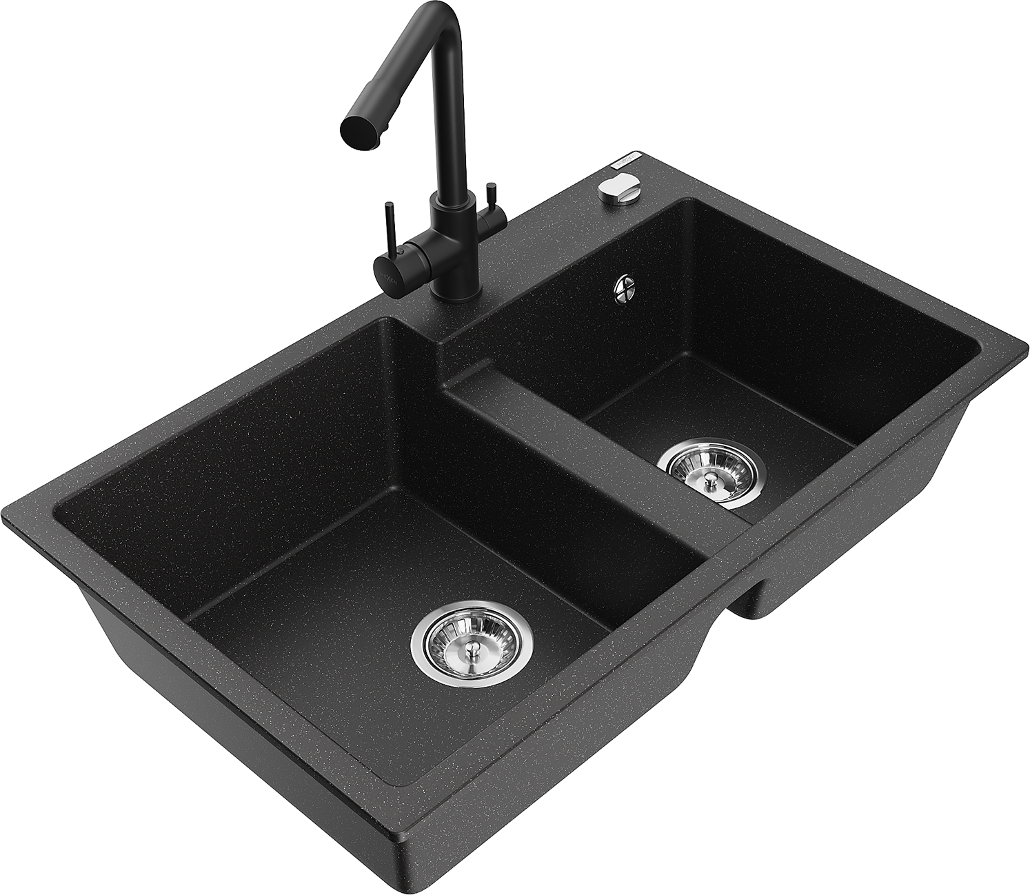 Mexen Tomas granitový dřez 2-komorový s kuchyňskou baterií Duero, černý/stříbrný metalík - 6516-73-671600-70