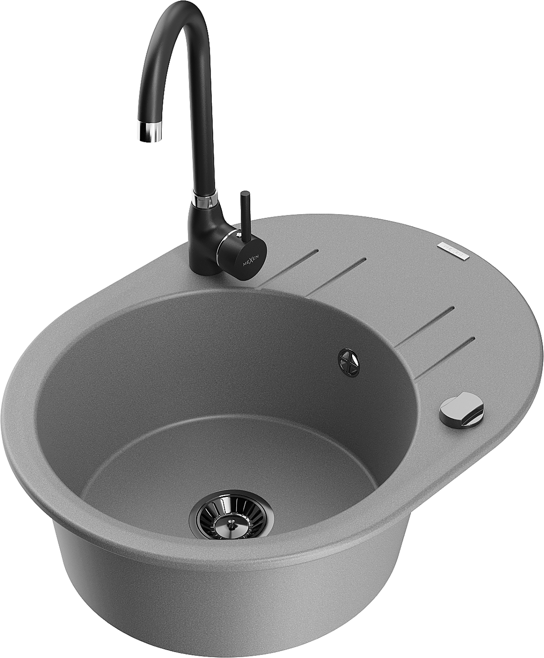 Mexen Kevin granitový kuchyňský dřez jednodřezový s odkapávačem a kuchyňskou baterií Telma, šedý - 6517-71-670200-70-B
