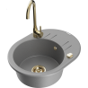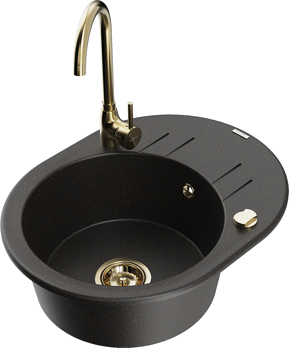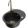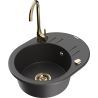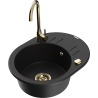 Mexen Kevin granitový dřez s 1 komorou a odkapem a kuchyňskou baterií Telma, černý/zlatý metalik - 6517-75-670200-50