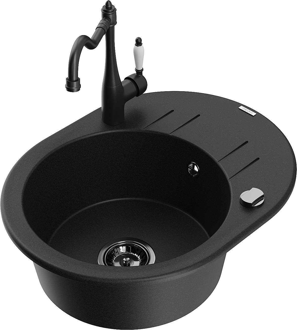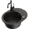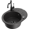Mexen Kevin granitový dřez 1-komorový s odkapávačem a kuchyňskou baterií Carla, černý - 6517-77-670700-70-B