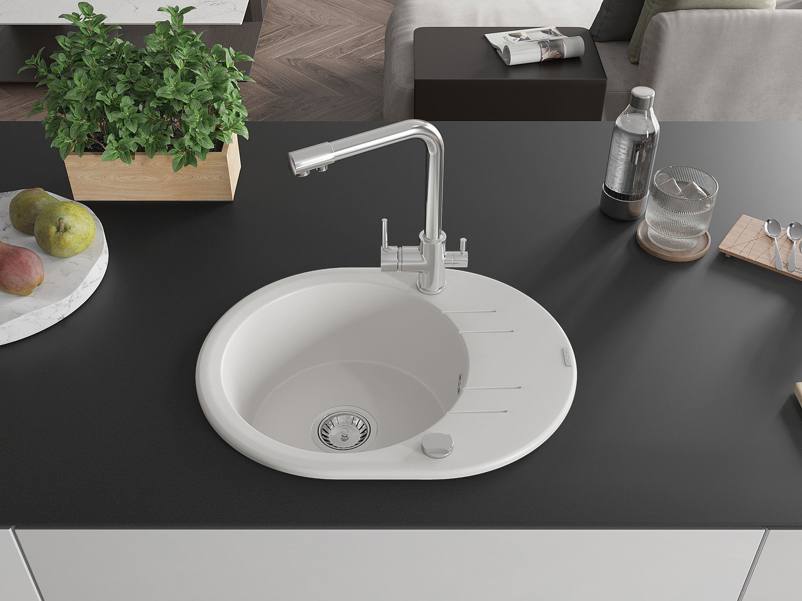 Dřez byl vyroben z vysoce kvalitního granitu. Představuje elegantní a především praktický doplněk každé kuchyně, bez ohledu na její styl. Vysoká kvalita a trvanlivost granitu zajišťují dlouholeté používání.