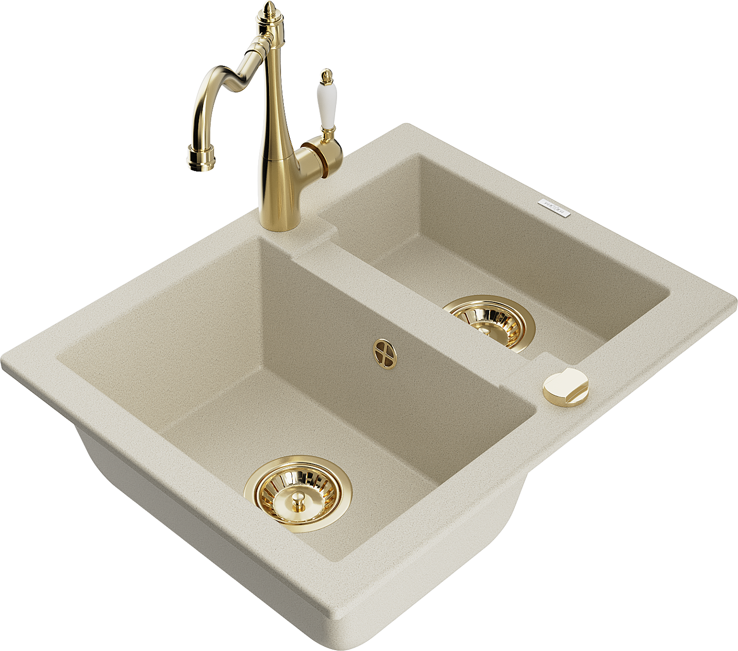 Mexen Carlos žulový dřez 1,5-komorový s kuchyňskou baterií Carla, béžový - 6518-69-670700-50