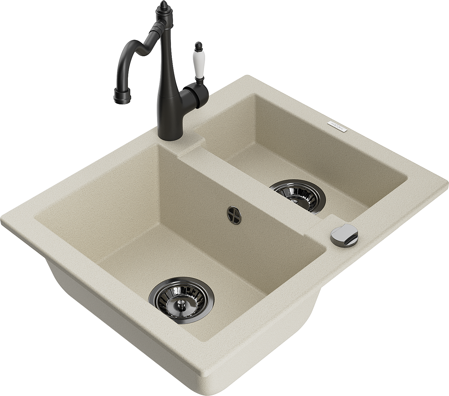 Mexen Carlos granitový dřez 1,5-komorový s kuchyňskou baterií Carla, béžový - 6518-69-670700-70