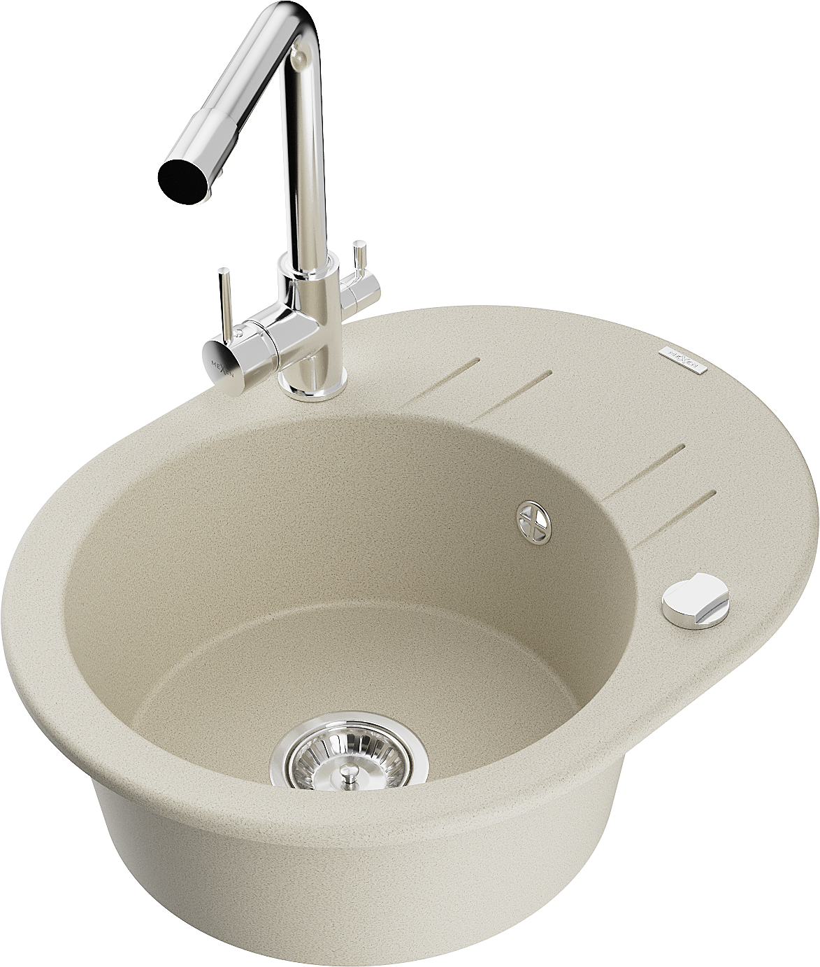 Mexen Kevin granitový dřez 1-komorový s odkapávačem a kuchyňskou baterií Duero, béžový - 6517-69-671600-00