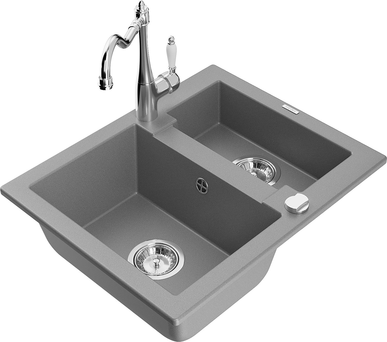 Mexen Carlos granitový dřez 1,5-komorový s kuchyňskou baterií Carla, šedý - 6518-71-670700-00