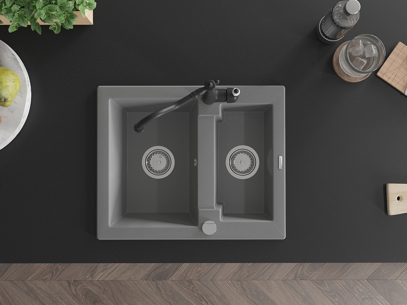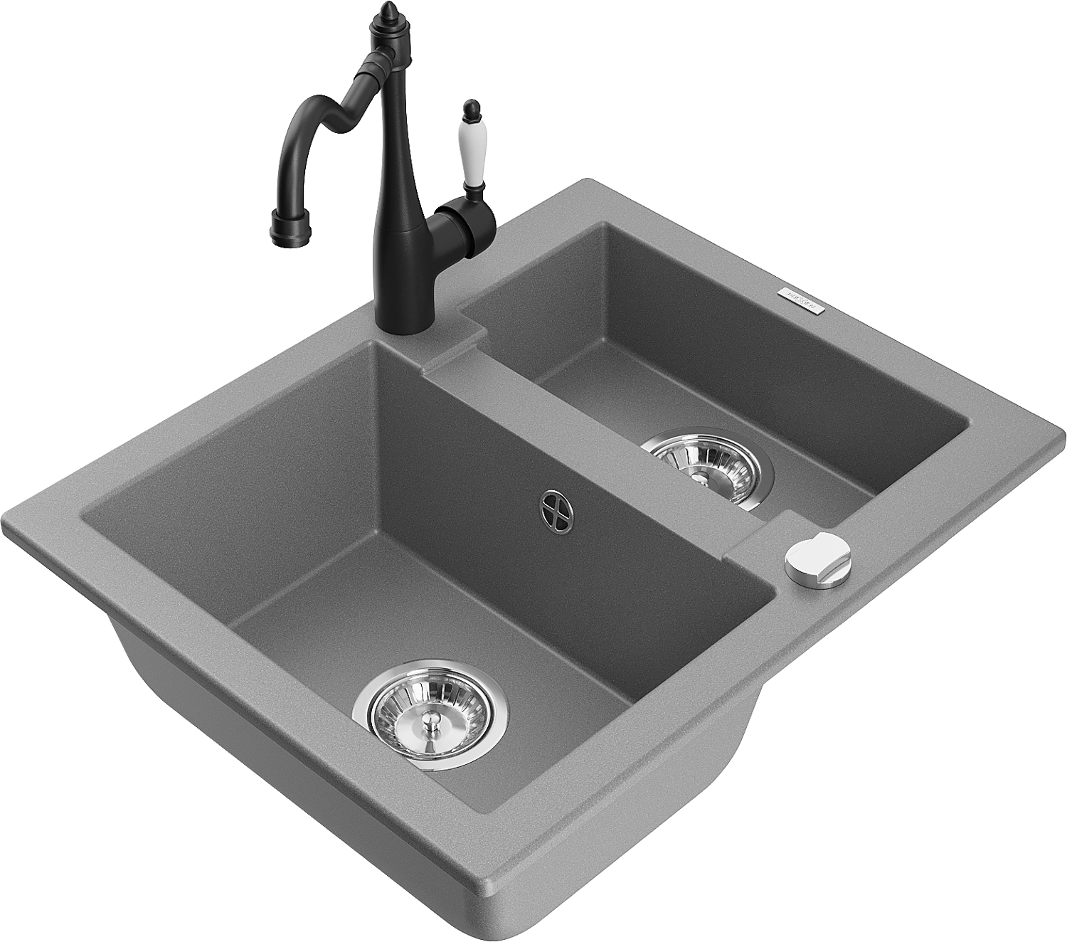 Mexen Carlos žulový dřez s 1,5 komorami s kuchyňskou baterií Carla, šedý - 6518-71-670700-70