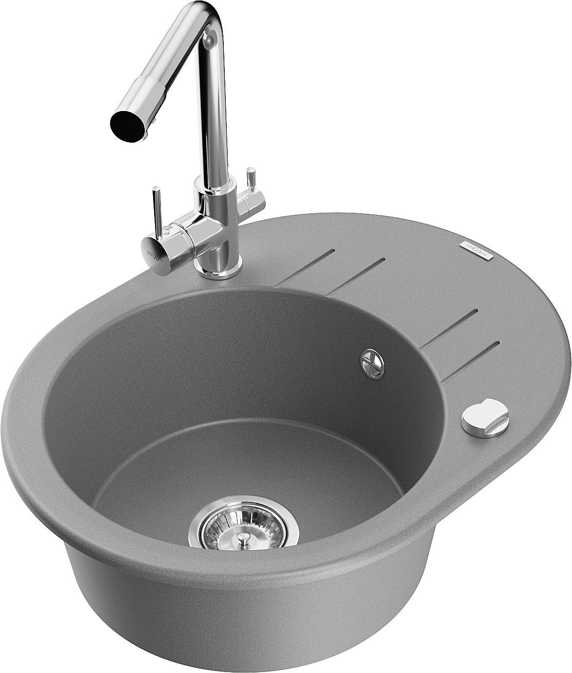 Mexen Kevin granitový dřez s odkapávačem a kuchyňskou baterií Duero, šedý - 6517-71-671600-00