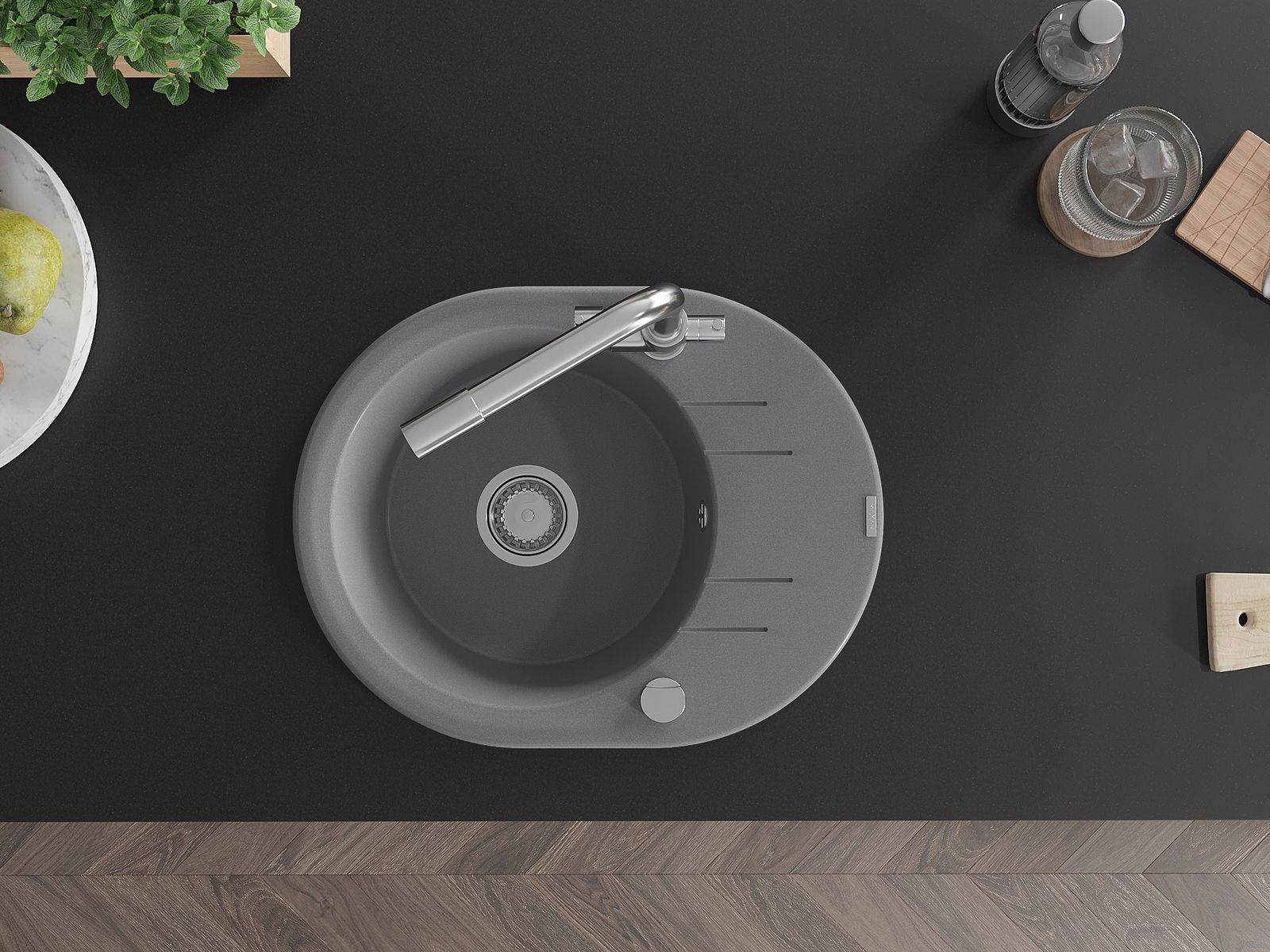 Dřez byl vyroben z vysoce kvalitního granitu. Představuje elegantní a především praktický doplněk každé kuchyně, bez ohledu na její styl. Vysoká kvalita a trvanlivost granitu zajišťují dlouholeté používání.
